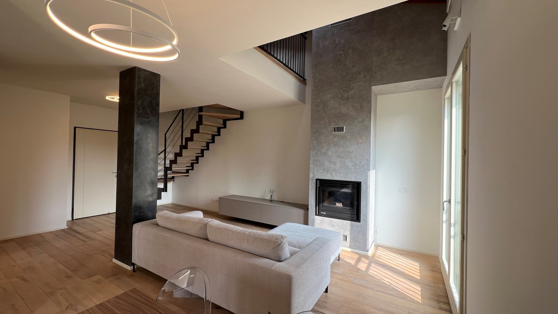 Nel cuore del borgo, ma in posizione defilata rispetto ai principali eventi del centro fontanellatese, in un piccolo complesso residenziale di pregio , molto ben tenuto, vendiamo bellissima soluzione abitativa, disposta su 2 livelli, posta al primo piano. Al piano principale si trova un ampio e luminoso soggiorno con camino e balcone ad angolo rivolto verso un bellissimo scorcio del paese, la cucina abitabile aperta sul soggiorno, 1 disimpegno con armadio a muro, 1 camera matrimoniale ed un bagno finestrato. Al secondo piano si trovano 2 stanze ed un bagno, tutti locali finestrati. La cucina, 1 camera matrimoniale, il soggiorno e i 2 bagni sono ammobiliati con arredamento nuovo, progettato su misura, di eccellente livello e ottimo gusto (tutto incluso nella richiesta). La proprietà è completata da una cantina ed un’autorimessa (un privilegio in centro storico) con bascula automatica. L’abitazione è in stato perfetto, pari al nuovo, rifinita, accessoriata ed ammobiliata con criteri e gusto impeccabili, il riscaldamento è a pavimento ( gestione autonoma sui 2 livelli), climatizzata in ogni zona, i serramenti sono in pvc con doppi vetri e zanzariere, i velux automatizzati, i pavimenti in rovere sbiancato, impianto di allarme, videocitofono, porta blindata.