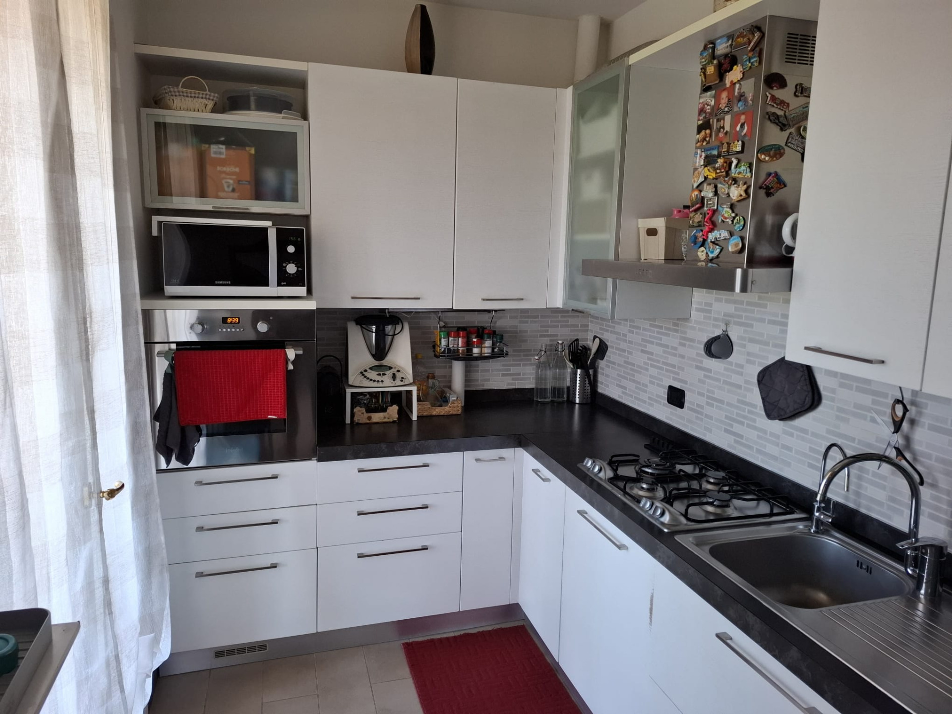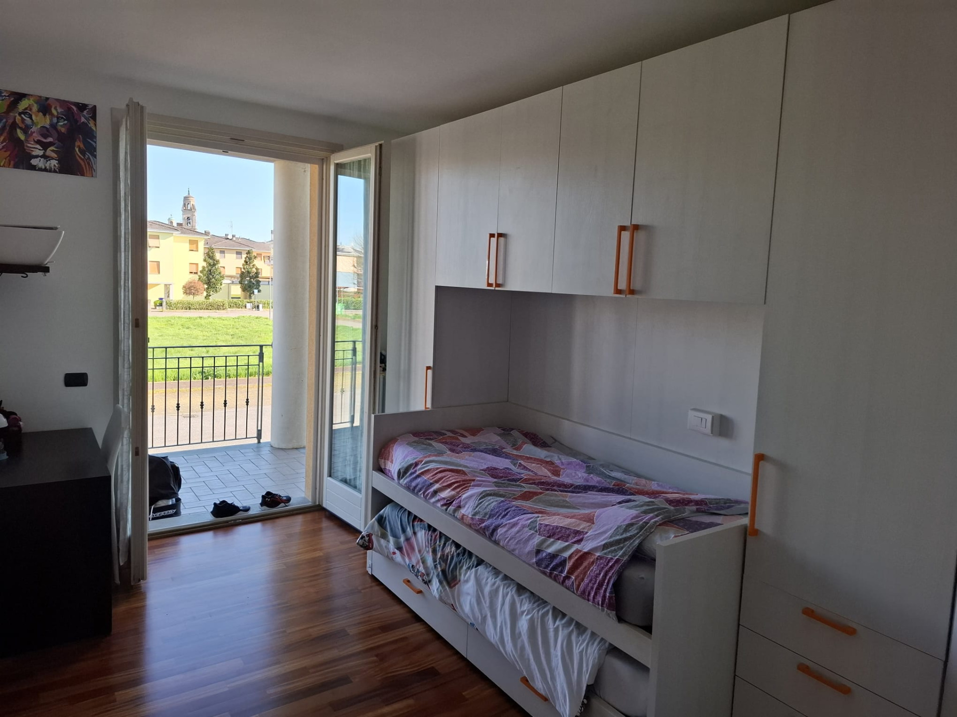 In zona tranquillissima del paese e centrale, a 200 mt dal Santuario della Beata Vergine, vendiamo bellissimo appartamento termoautonomo posto al PRIMO PIANO di una piccola palazzina ( scala di 4 unità), molto curata e con basse spese condominiali. L’appartamento è luminosissimo grazie al verde che lo circonda, all’ottima esposizione e alla presenza di 4 porte balcone che conducono a 2 logge e un balcone dove si può tranquillamente pranzare e soggiornare. E’ così composto: ingresso in soggiorno che affaccia su ampia loggia coperta, cucina ( arredata e inclusa nella richiesta) anch’essa su loggia, disimpegno, 2 camere grandi, 2 bagni, 2 terrazzi, cantina, garage, 1 posto auto in cortile in proprietà, un pezzetto di terreno (orto). L’abitazione è in ottimo stato, curata e ben mantenuta, dotata di porta blindata, videocitofono, 2 condizionatori con pompa di calore installati nel 2025, tendoni ai terrazzi, serramenti in legno con doppio vetro e zanzariere, cancello automatico.